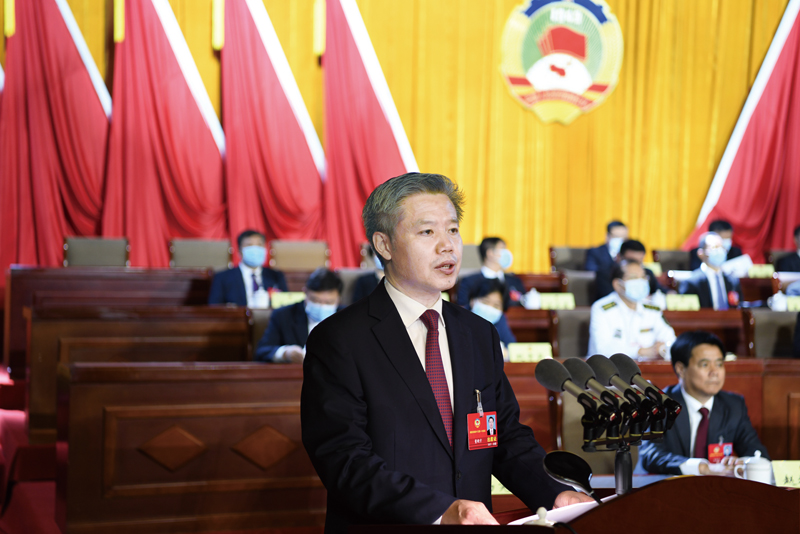 劉文勤作市政協(xié)常委會(huì)工作報(bào)告。本網(wǎng)記者陳琦嘉李國強(qiáng)攝